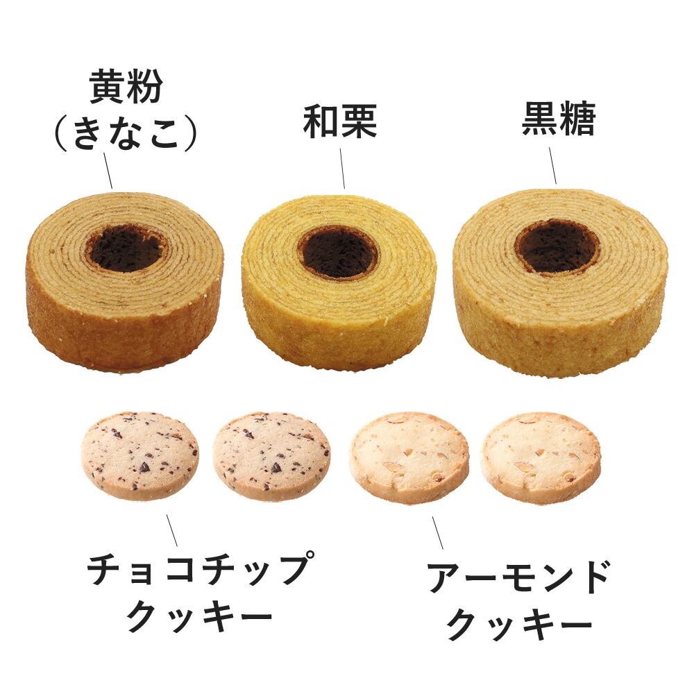 3つの味を堪能できる和のバームクーヘンと、サクッと軽やかな食感が楽しいクッキーが一度に楽しめます。