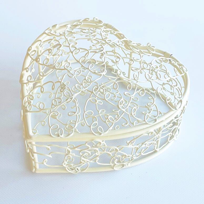 ワイヤー製のボックスは、お花やリボンなどでアレンジしやすく、お二人だけのオリジナルリングピローに仕上げていただくこともできます。