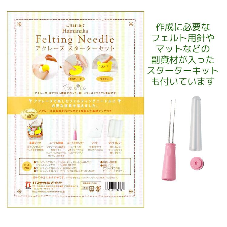 フェルティング専用の針とマット、乾くと透明になる手芸用ボンド付きで、届いてすぐに作り始められます。