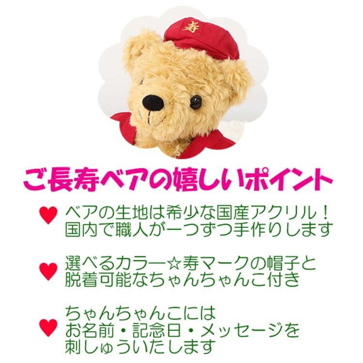 ご長寿のお祝いに皆様から愛されるテディベア。