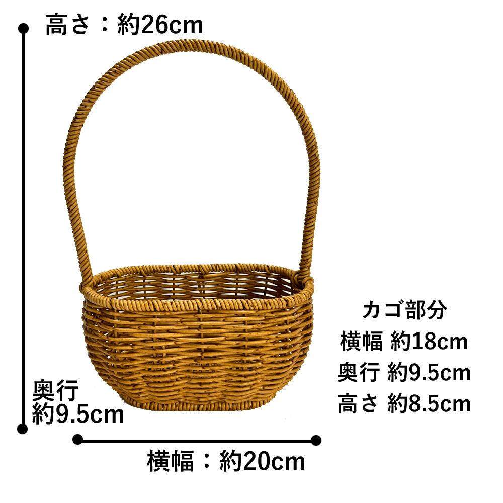 ナチュラル バスケット オーバル型 持ち手付き 高さ約26cm 横約20cm かご 楕円