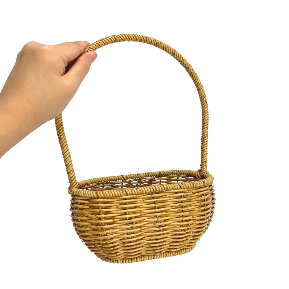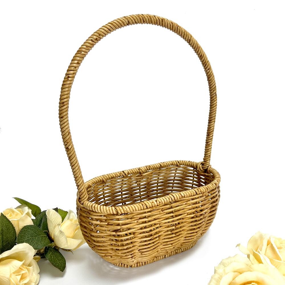 ナチュラル バスケット オーバル型 持ち手付き 1個 高さ約27cm 横約 18cm フラワーベース フラワーガール かご カゴ 楕円 結婚式