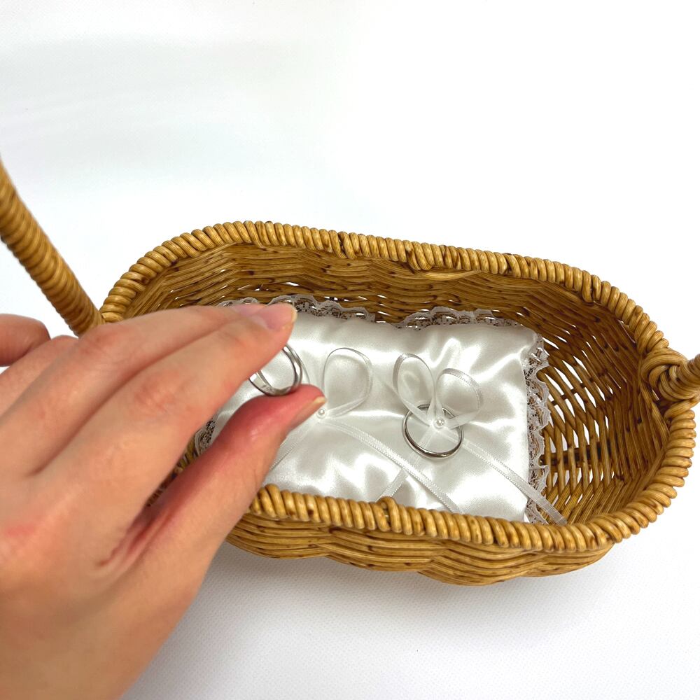 楕円形が可愛いナチュラルテイストのバスケットとリングピローのセット。