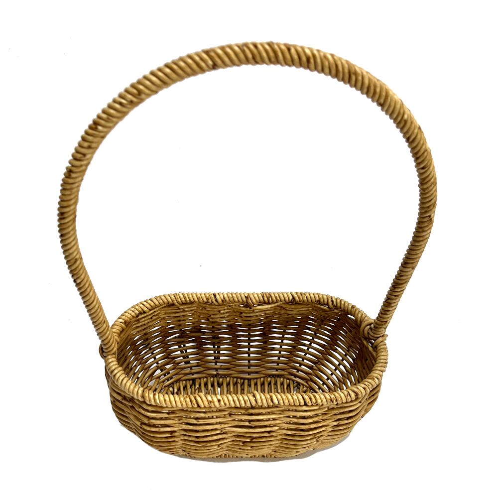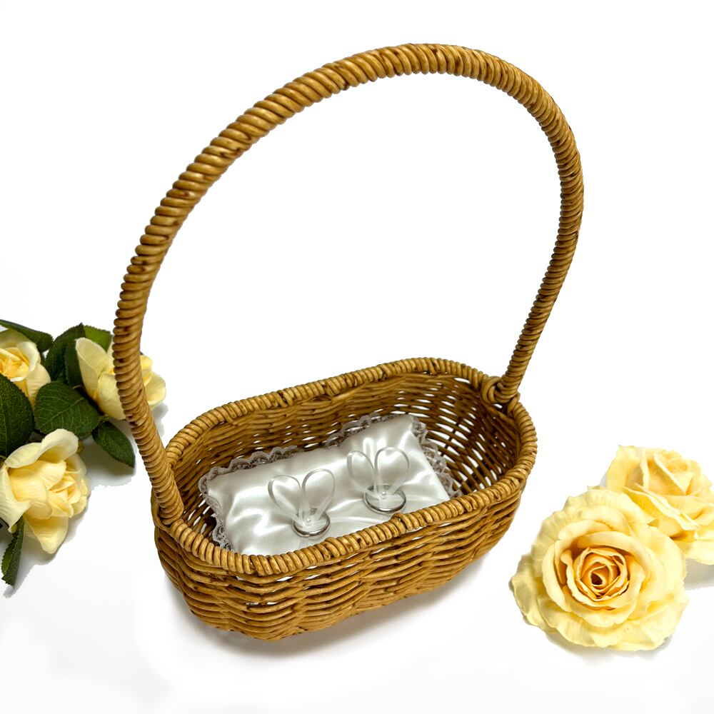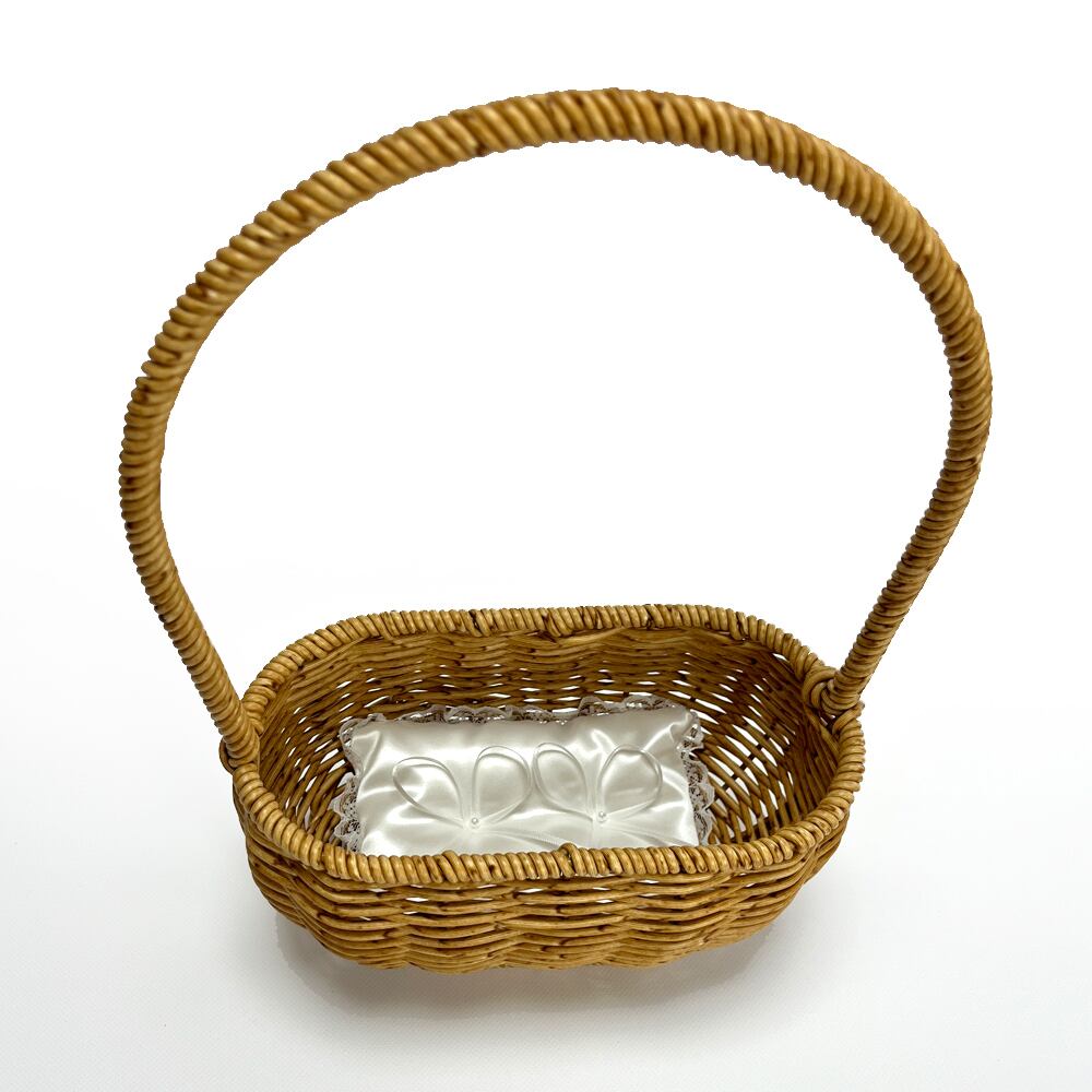 ナチュラル バスケット オーバル型 持ち手付き 1個 高さ約27cm 横約 18cm 結婚式 リングガール リングボーイ 人前式 リングドッグ 楕円形 かご型 持ちやすい 子供 持ち運び カゴ付き