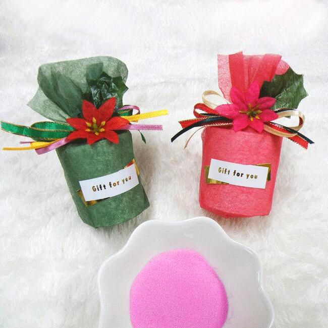 ポインセチア付きピンクのバスソルトのプチギフト1個 クリスマス パーティ 結婚式 二次会 入浴剤 バスグッズ