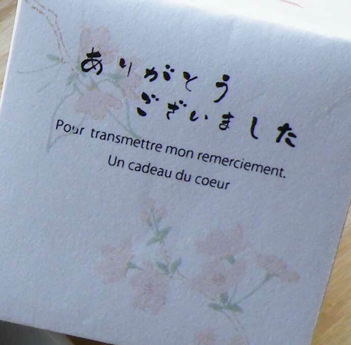 「感謝の気持ちを伝えたい、真心込めた贈りもの」という意味のフランス語がかかれています。