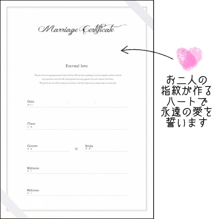 (お二人の指紋スタンプでハートマークをお作りください)