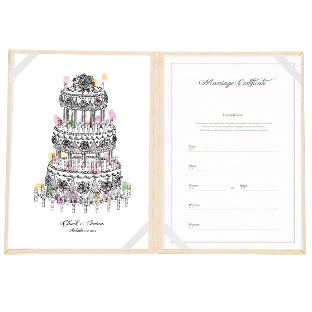 ウエディングケーキの結婚証明書。