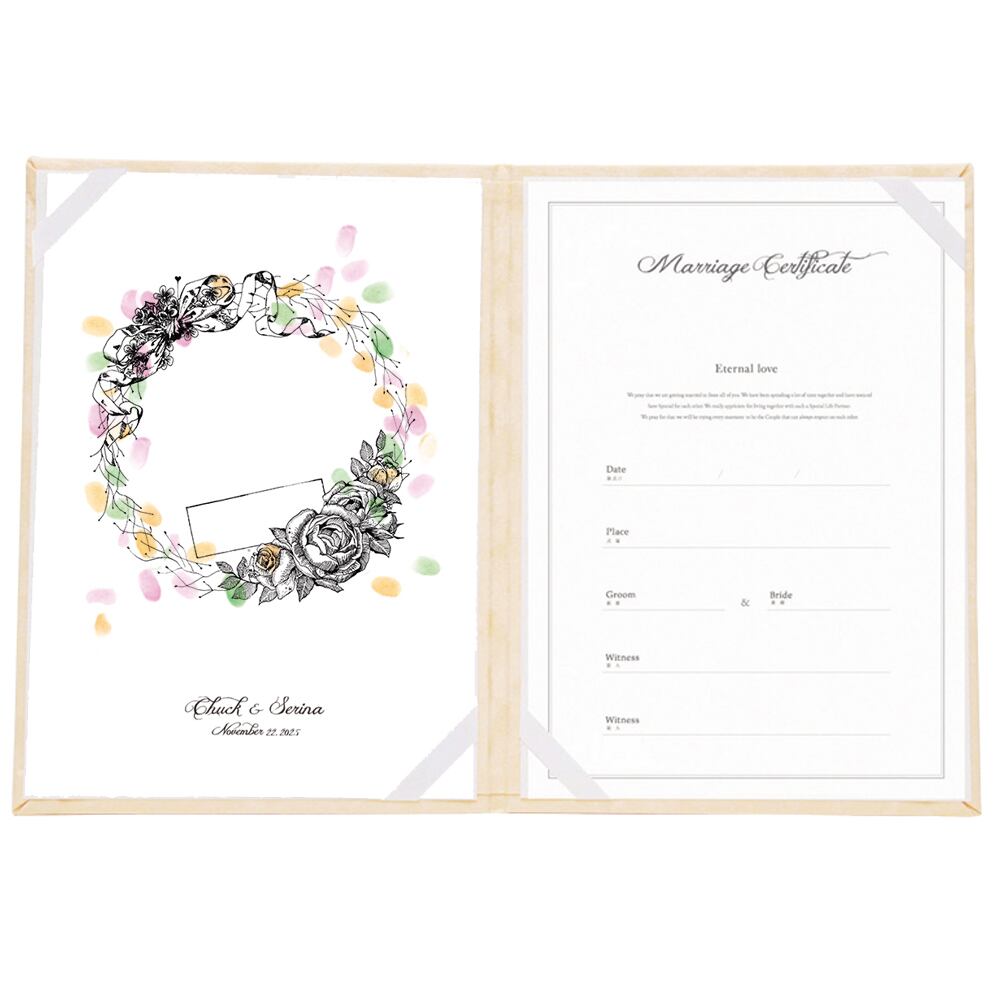 結婚証明書 スタンプ 拇印 指紋 結婚式 ウェディング 結婚祝い 人前式 誓約書 ゲスト参加型 30名 40名 5名0 60名 70名 80名 名入れ 印字 花輪 花冠 リース