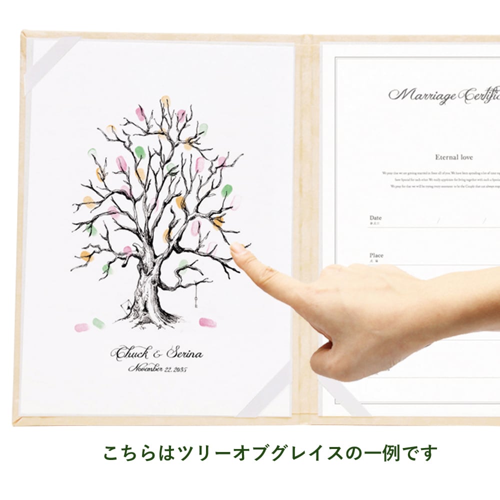 挙式での誓いのキスと、形に残る新郎新婦のサイン&ハートスタンプで、お二人の愛とゲストからの祝福が詰まった世界にひとつだけのオリジナル誓約書が完成します。