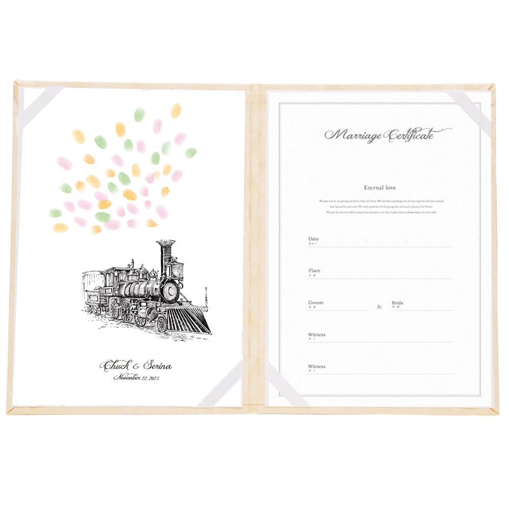 結婚証明書 スタンプ 拇印 指紋 結婚式 ウェディング 結婚祝い 人前式 誓約書 ゲスト参加型 30名 40名 5名0 60名 70名 80名 名入れ 印字 鉄道 列車 電車 トレイン 機関車