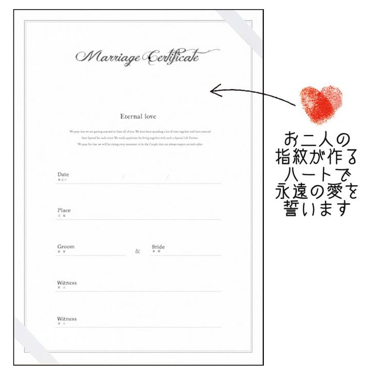 結婚証明書 スタンプ 拇印 指紋 結婚式 ウェディング 結婚祝い 人前式 誓約書 ゲスト参加型 30名 40名 5名0 60名 70名 80名 名入れ 印字