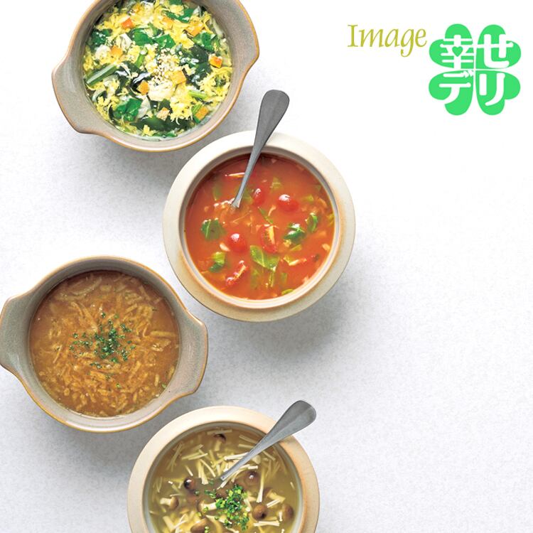 フリーズドライ野菜スープ 4食入り セットD(キャベツとトマト、飴色たまねぎ、野菜とたまご、和風しめじとえのき)
