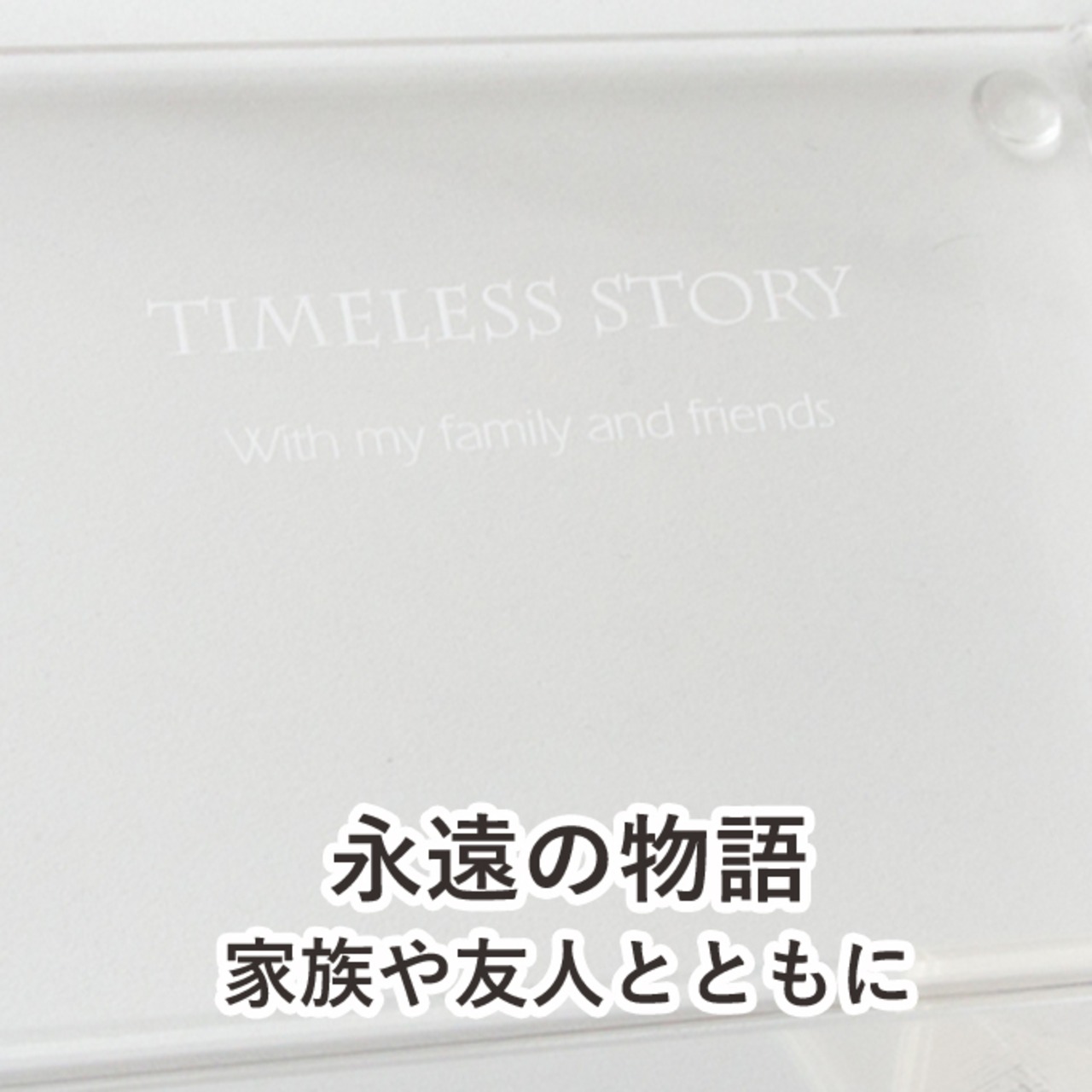 (訳:永遠の物語 家族や友人とともに)と印字されています。