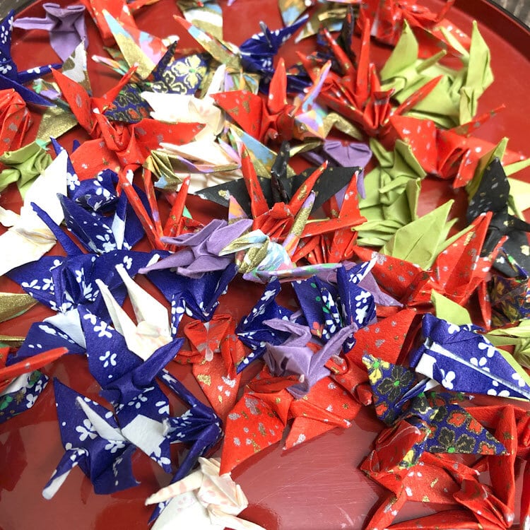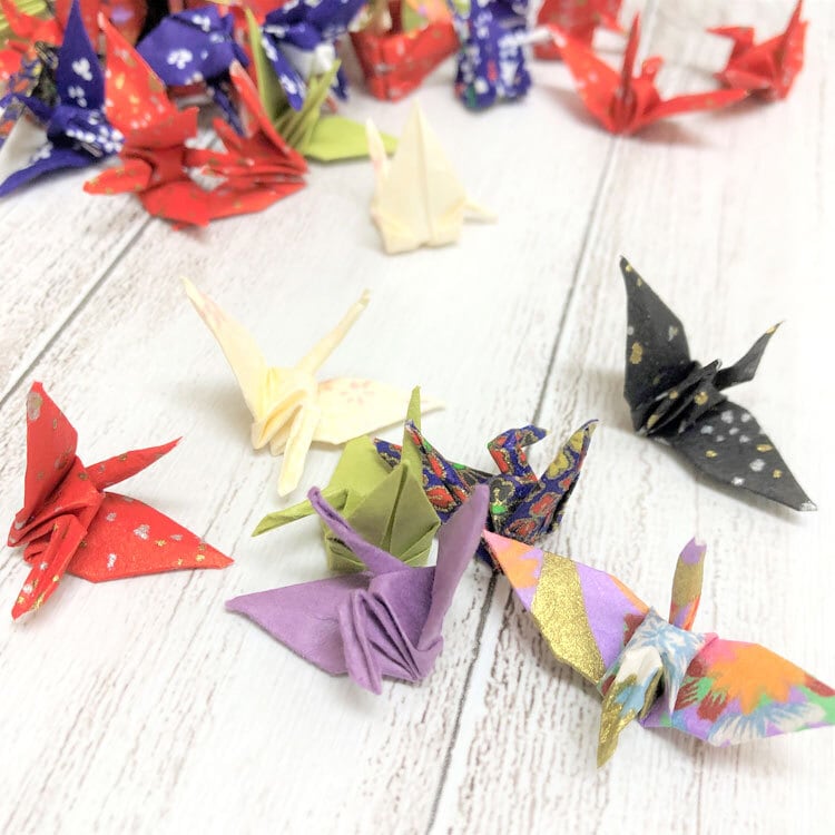 和の伝統色をベースにした和紙の折り鶴シャワー。