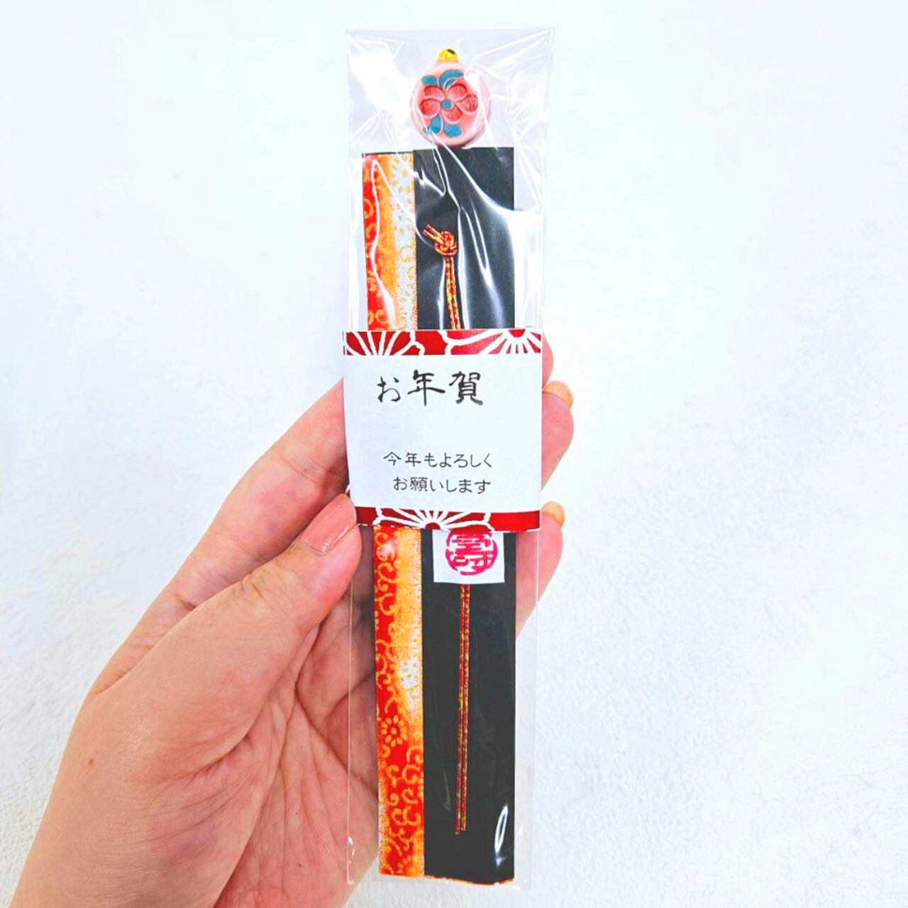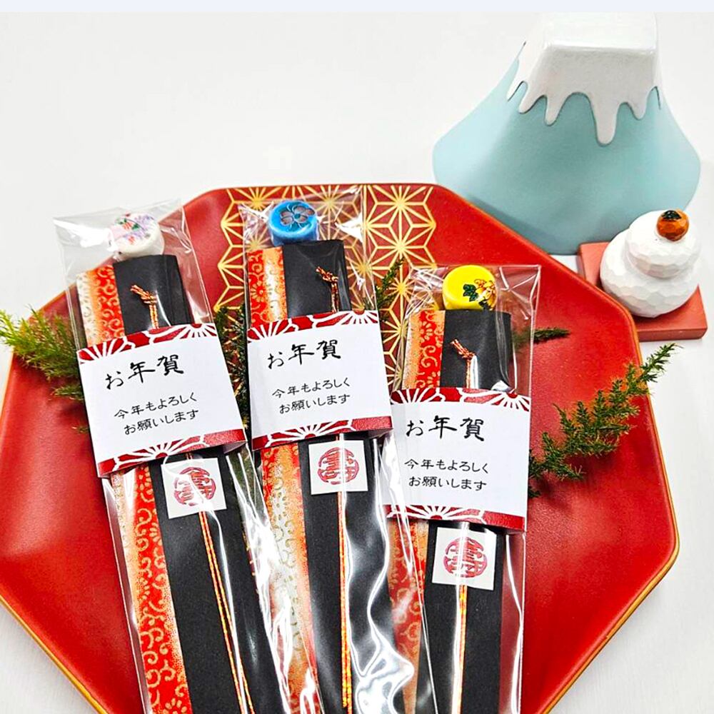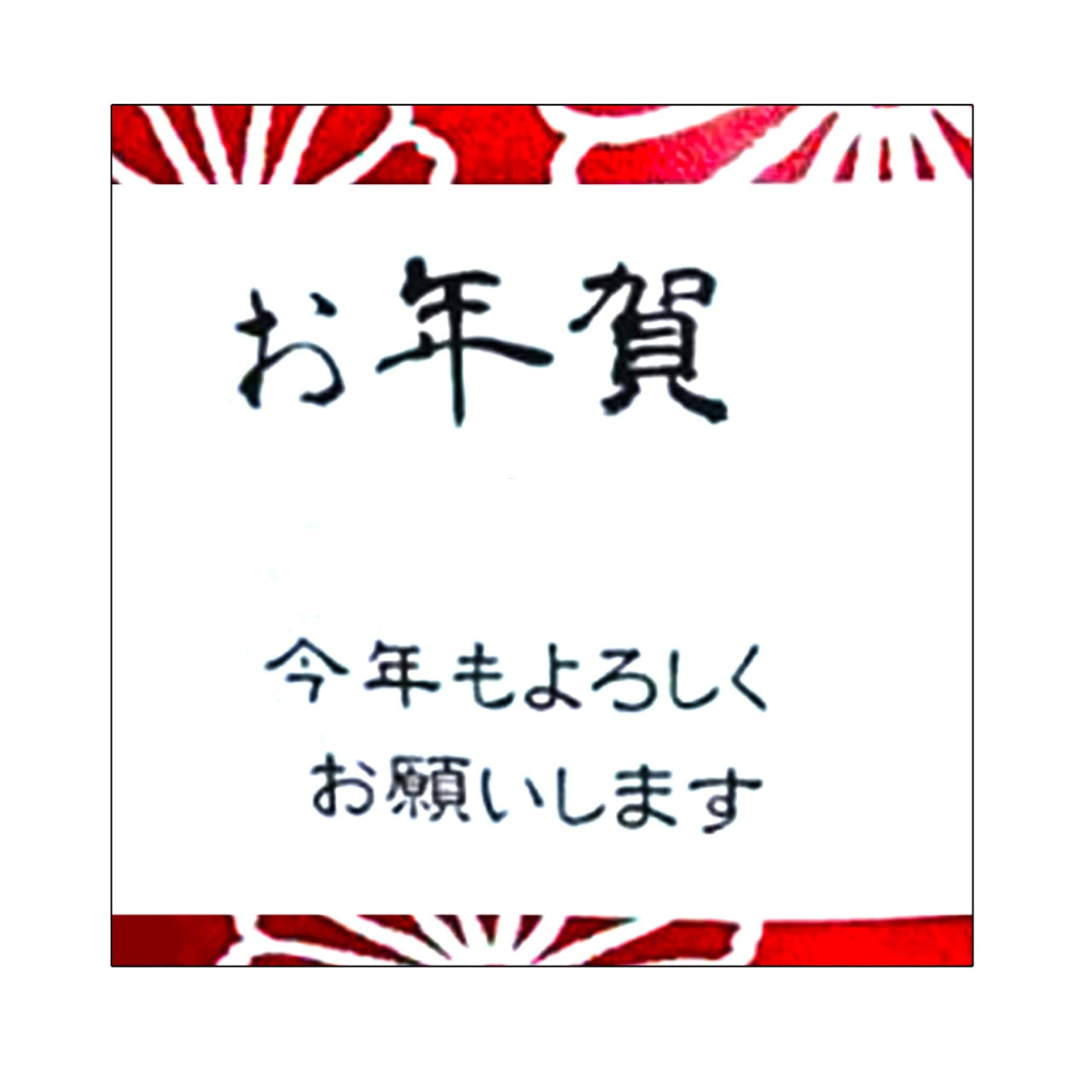 おめでたい紅白カラーを基調としたパッケージには、「壽」のシールと、「お年賀 今年もよろしく お願いします」と書かれているので、お正月のごあいさつ回りや企業のノベルティ、初売りのプチプレゼントにオススメです。