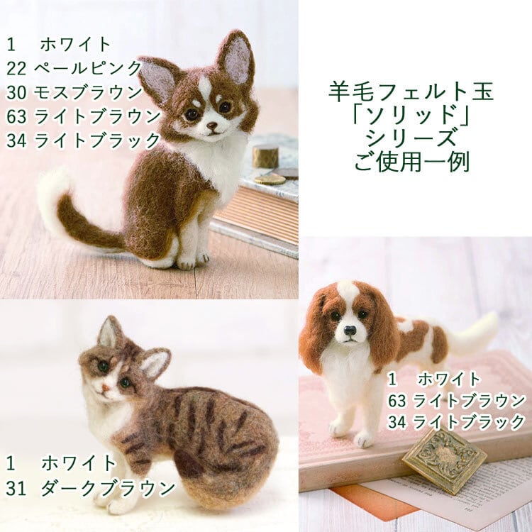 作品を一から制作するのはもちろん、市販の犬猫の手作りキットなどの色を、ご自宅のペットと同じ色に変えたいときや、マスコットなどのカラーバリエーションチェンジにもオススメです。