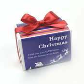 サンタクローズがトナカイのそりに乗るシルエットと、ジングルベルのイラストに「Happy Christmas」のメッセージ入りなので、ホリデーシーズンにピッタリのプチギフト。