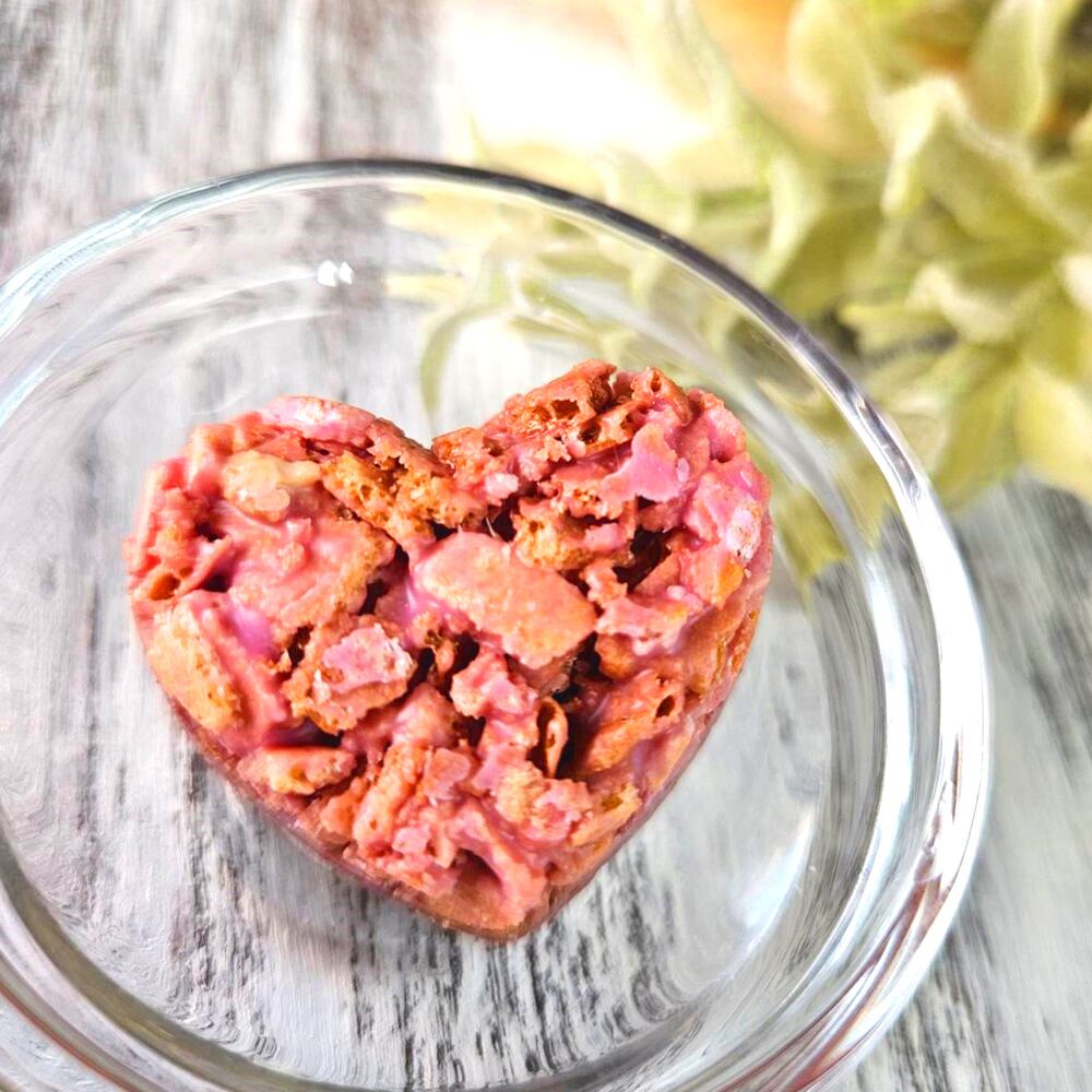 中には美味しいストロベリー風味のハート型クランチチョコレート入っています。