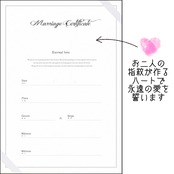 挙式での誓いのキスと、形に残る新郎新婦のサイン&ハートスタンプで、お二人の愛とゲストからの祝福が詰まった世界にひとつだけのオリジナル誓約書が完成します。