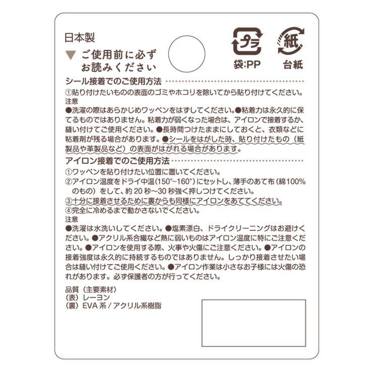 ★アイロン接着またはシールとして貼るか、縫いつけてください。