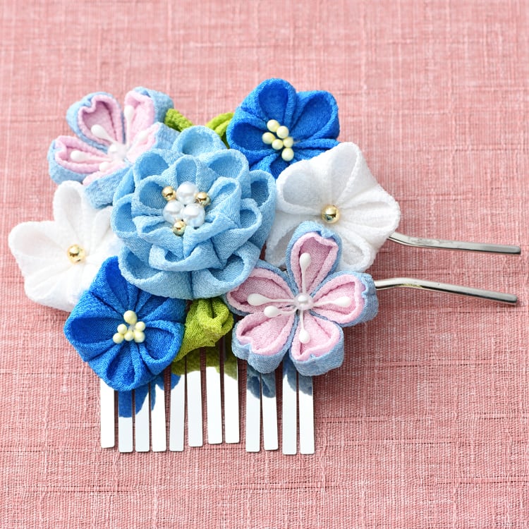 つまみ細工 お花のかんざし かれん 水色 手作りキット