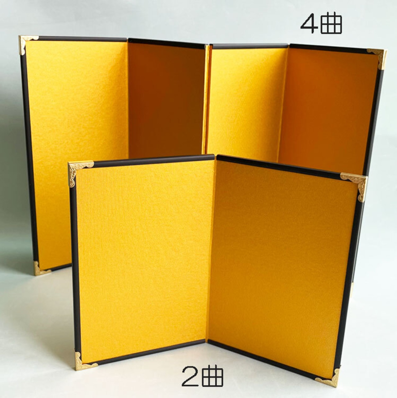 ミニ金屏風(きんびょうぶ)2曲 隅金具付き 高さ約15cm