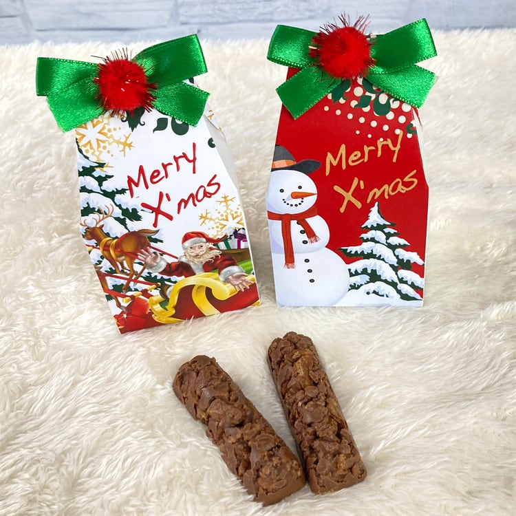 手書き風に「Merry X'mas」と書かれたボックスの中には、この時期だけ限定のクランチチョコが2本入っています。