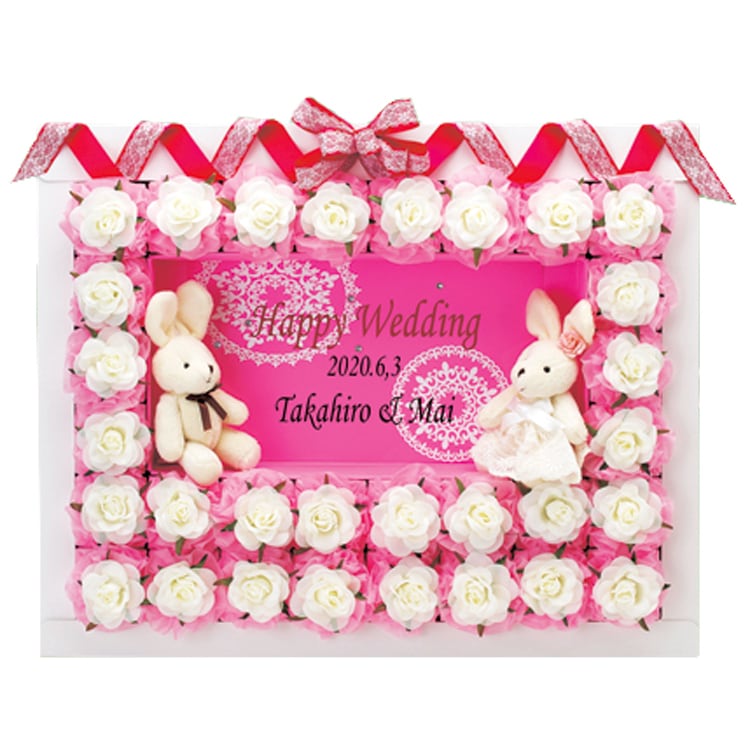 「ラビットとホワイトローズ」 ウェルカムボード ピンク(苺チョコ2粒入りのプチギフト 30個セット)