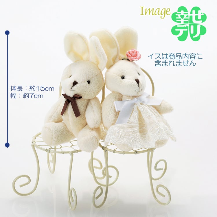 メーカーのオーナーが足が棒になるくらい探し歩いたという可愛らしさのラビットたちはウェルカムドールにもなり、挙式後はお家に飾ることもできます。