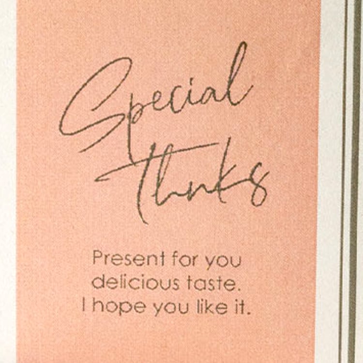(心から感謝。おいしい味をプレゼント。気に入ってくれることを祈ります。)と書かれています。