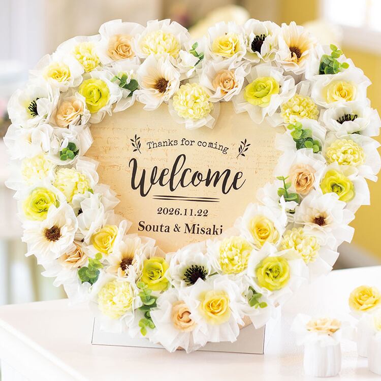 ウェルカムオブジェは結婚式や披露宴でウェルカムボードとして活躍した後、ゲスト全員にプチギフトとしてお手渡しできるスグレモノ。