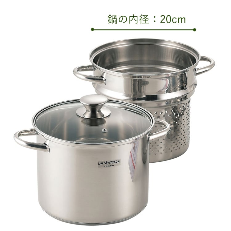 ラ・ベットラ ダ オチアイ 深型鍋 パスタポット スチーマー 3点セット 20センチ 結婚祝い 引越し祝い 新築祝い 内祝 バースデー プレゼント 寸胴鍋 スチーマー 蒸し器