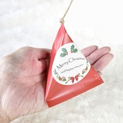 パッケージにはヒイラギの葉やリボンのイラストに、「Merry Christmas and happy new year」と書かれているので、クリスマスウェディングのプチギフトの他、クリスマスパーティーのプチプレゼント、保育園、幼稚園、子供会、イベントの参加プレゼント、ウィンターシーズンのちょっとしたご挨拶・お礼、企業イベントのノベルティや参加賞などにお使いいただけます。