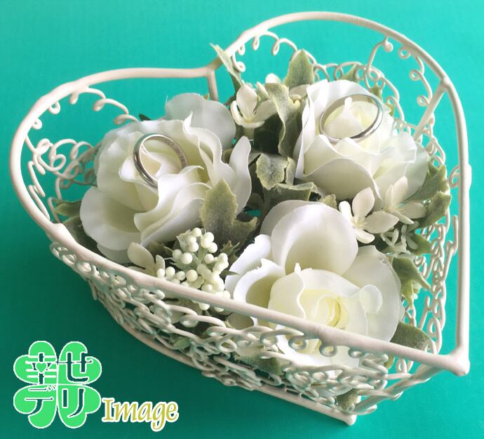 指輪3つ用 ミルキーホワイト ハート型バスケット リングピロー完成品 (ハート型 リングクッション )結婚式 人前式 花嫁diy ワイヤー製 カゴ型 婚約指輪 結婚指輪 マリッジリング エンゲージリング ベビーリング