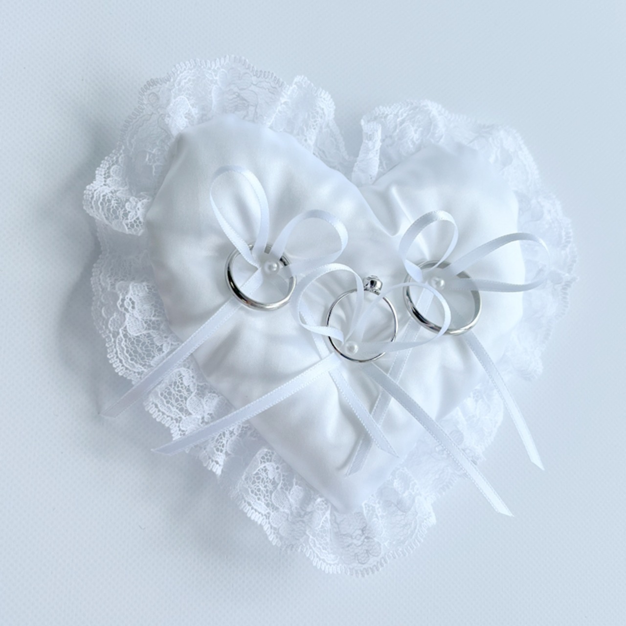 指輪3つ用 ハート型 リングピロー 完成品 ミルキーホワイト