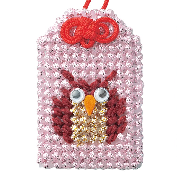 かわいいお守り型の名前札を手作りで。かばんやレッスンバッグにつけるネーム札 自由研究 手先の運動 趣味の手芸 指の運動 迷子対策 健康手芸 迷子札 ストラップ フクロウ 梟