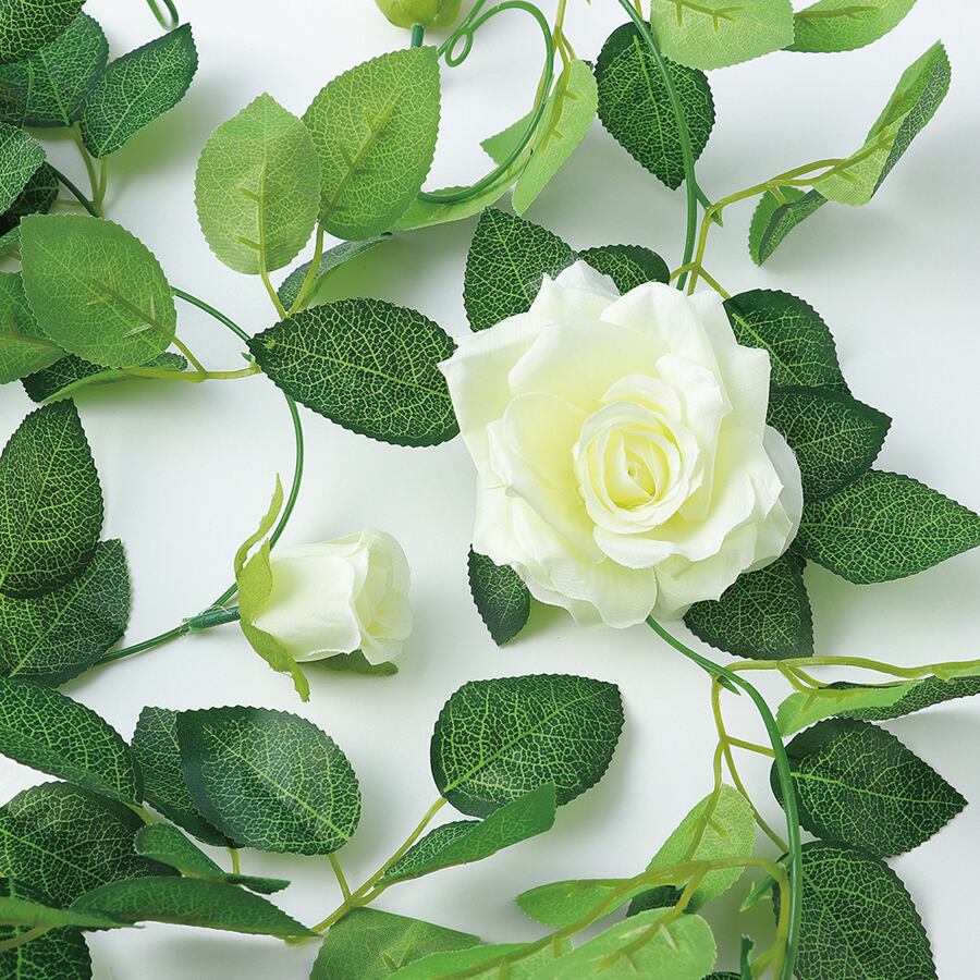 ワイヤースタンド、ワイヤーフレーム、ホワイトローズのガーランド、