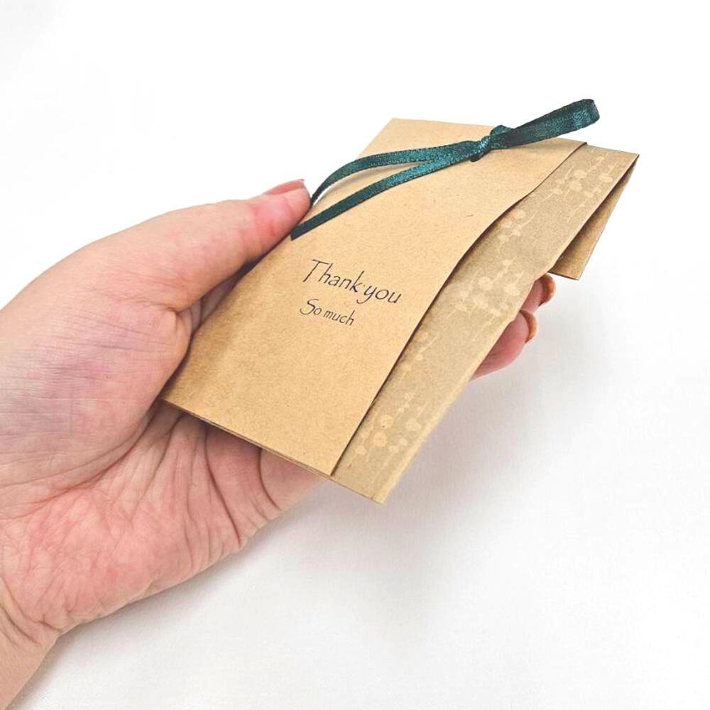 ナチュラルなクラフト紙のパッケージに、フォレストグリーンのリボンをあしらったプチギフトです。
