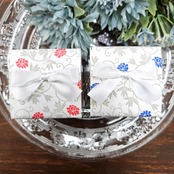 小花とツタをエレガントに配した蔦花文様のデザインに、気品あるホワイトのリボンをかけました。